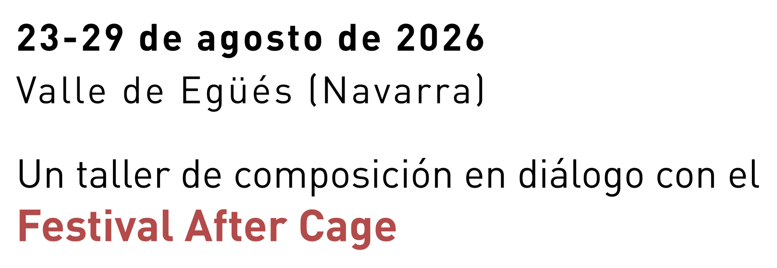 After Cage Composition Workshop es un espacio de trabajo intensivo dirigido a compositores en formación avanzada o recién titulados que deseen desarrollar una obra propia en un contexto de acompañamiento personalizado, reflexión crítica y trabajo directo con intérpretes especializados en música contemporánea.
